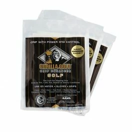 Whether you want to improve your grip in wet conditions or give your old grips a new grip feel, the Gorilla Gold Golf Grip Enhancer has become the most recommended name in golf and in every sport where grips play an important role. Gorilla Grip tacks up grips or hands for better control, repels moisture with a waxy coating, and dry-cleans grips by removing oil and dirt.