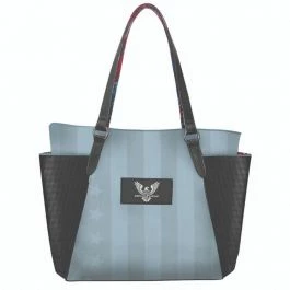 The Subtle Patriot Carry Tote is the “Transformer” of the tote world as it will change into the bag you need for whatever your lifestyle activity. Equipped with a padded laptop containment pocket, snap shut tablet pouch that doubles as a “carry” pocket, multiple zippered security compartments, two hydration ports and an oversized center pouch, this carry tote is perfect whether you’re on the way to the beach, yoga class, the office or an exotic destination. With antique silver hardware, protective bottom feet bag and right-sized, padded straps for side or shoulder carry, comfort and durability are guaranteed.